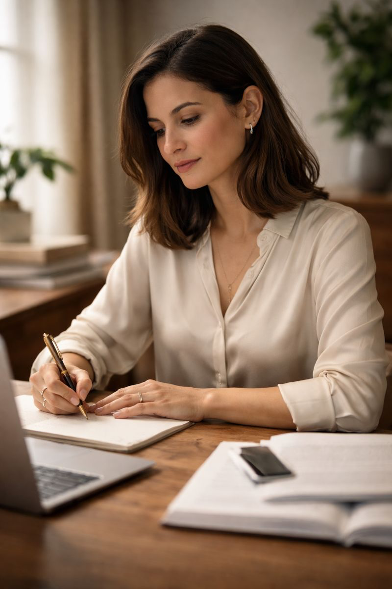 During moments of deep concentration, it rests gently within sight. A reminder to trust her thinking, honor her process, and remain grounded while ideas take shape.