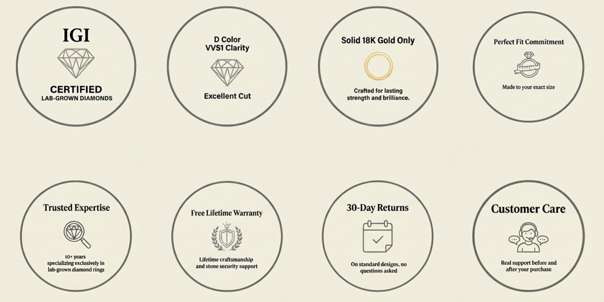 By working exclusively with lab-grown diamonds and focusing only on rings, our team dedicates every detail to brilliance, balance, and lasting craftsmanship.